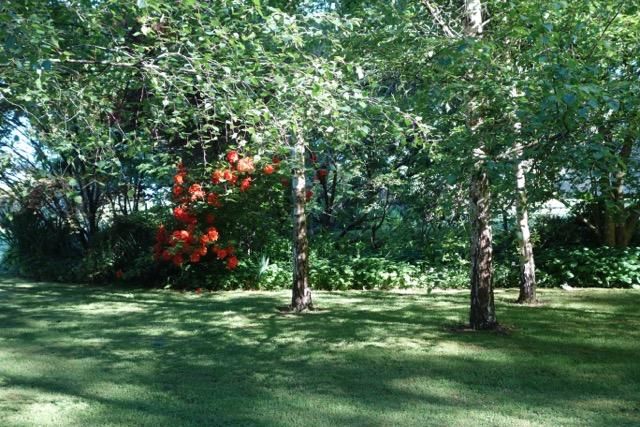 Organic principles have guided the growth of this 2 ½ acre garden. Broad lawns, showcase copper beeches, silver birches and maples set against towering Mountain Ash. Orchard and vegetables in raised beds. Boardwalk through a fern gully and a spring fed creek.